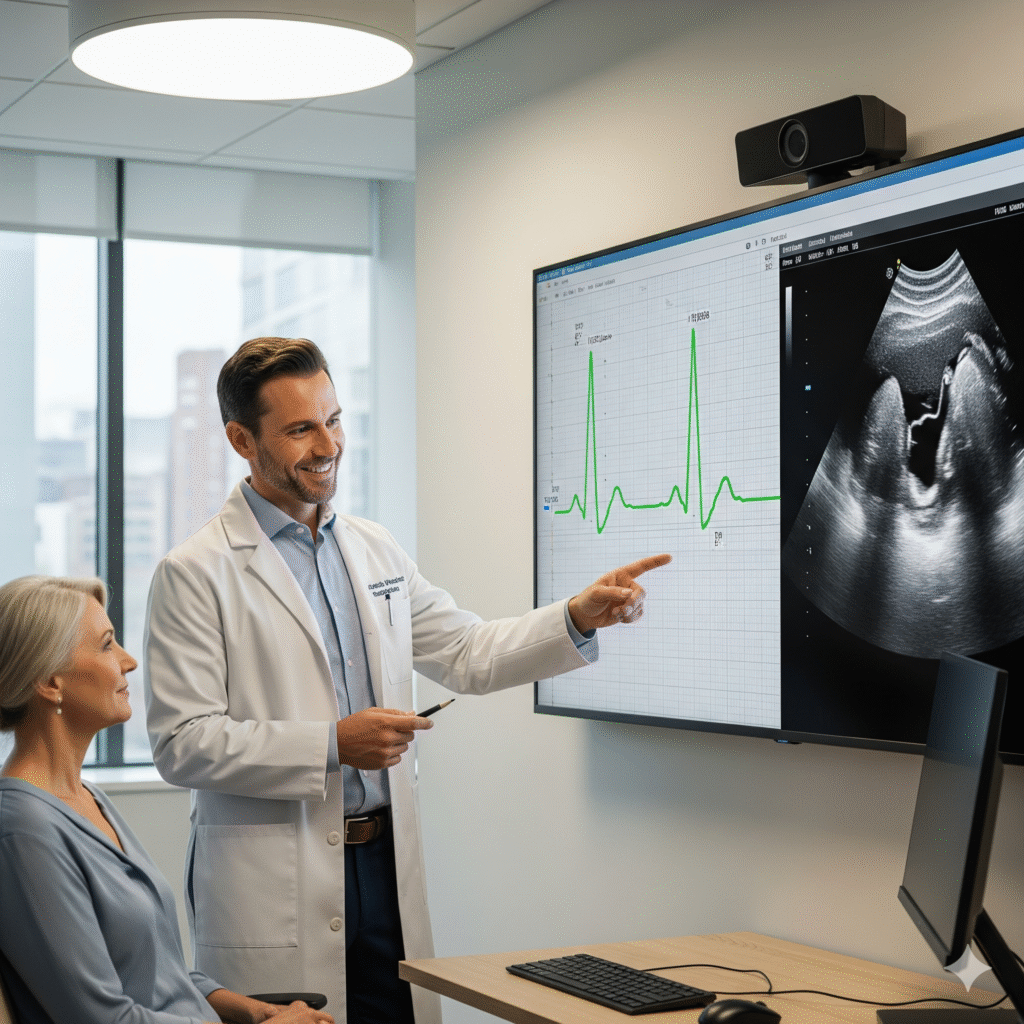 Já o ecocardiograma é um exame de ultrassom. Em outras palavras, ele gera imagens detalhadas e em movimento do coração. Enquanto o ECG analisa a parte elétrica, o ecocardiograma mostra a estrutura física e a função mecânica do coração.